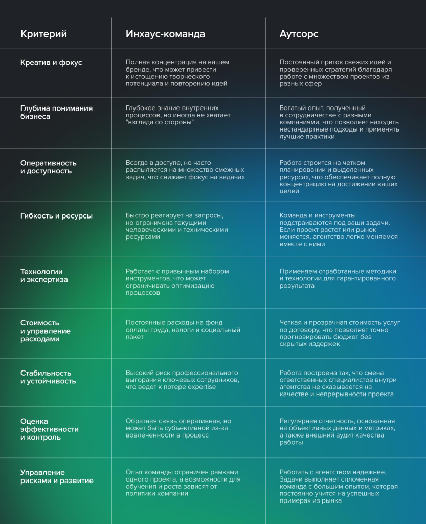 Так что же выбрать инхаус или аутсорсинг?