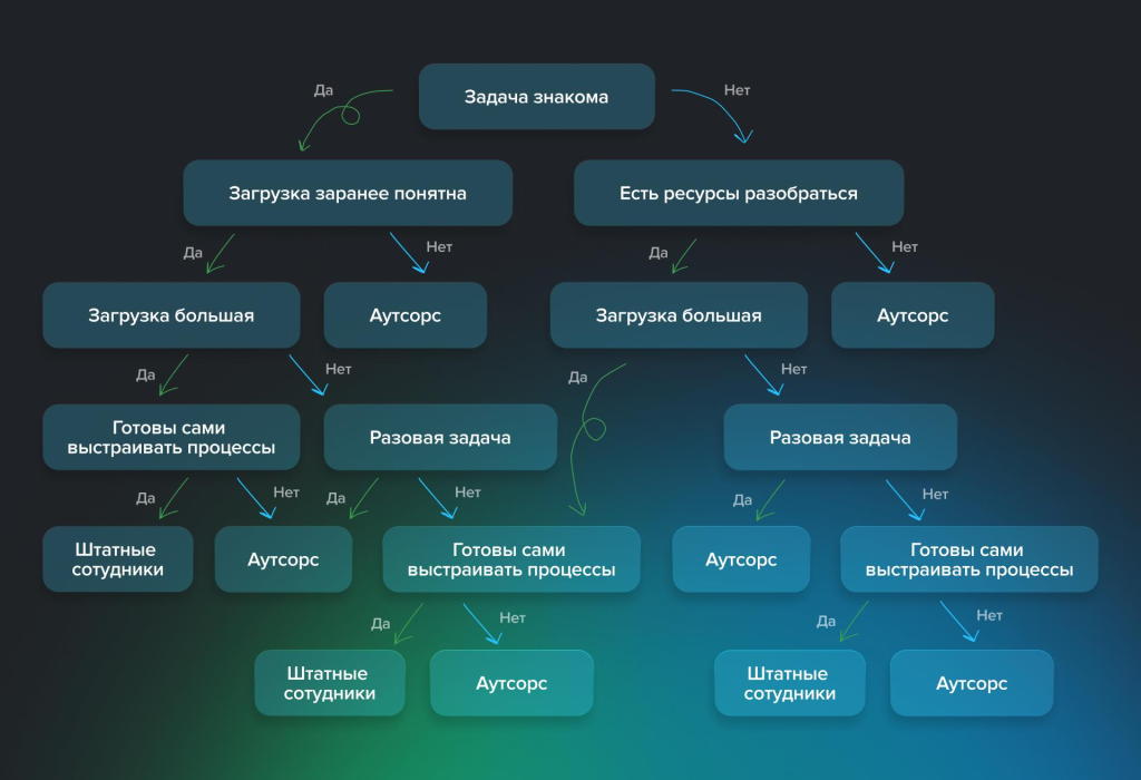 Бюджет. Есть ли у компании ресурсы на зарплаты, оборудование, обучение и офис? Если нет — аутсорс экономит средства и превращает постоянные расходы в предсказуемую стоимость результата. Деньги, как всегда, главный архитектор решений.
