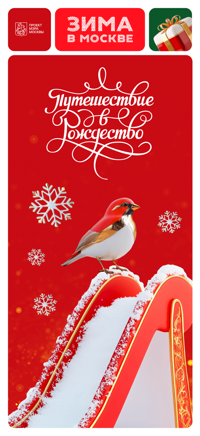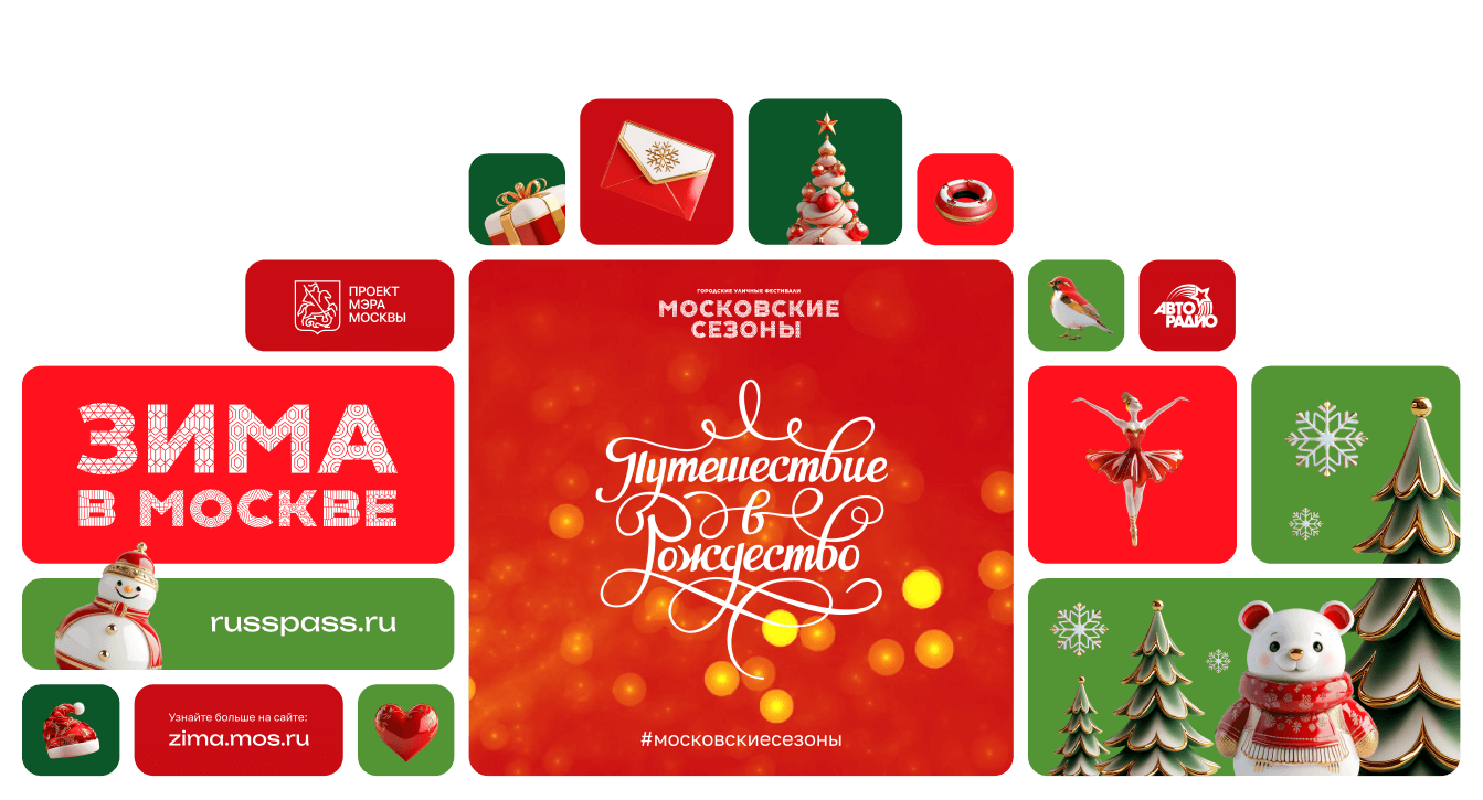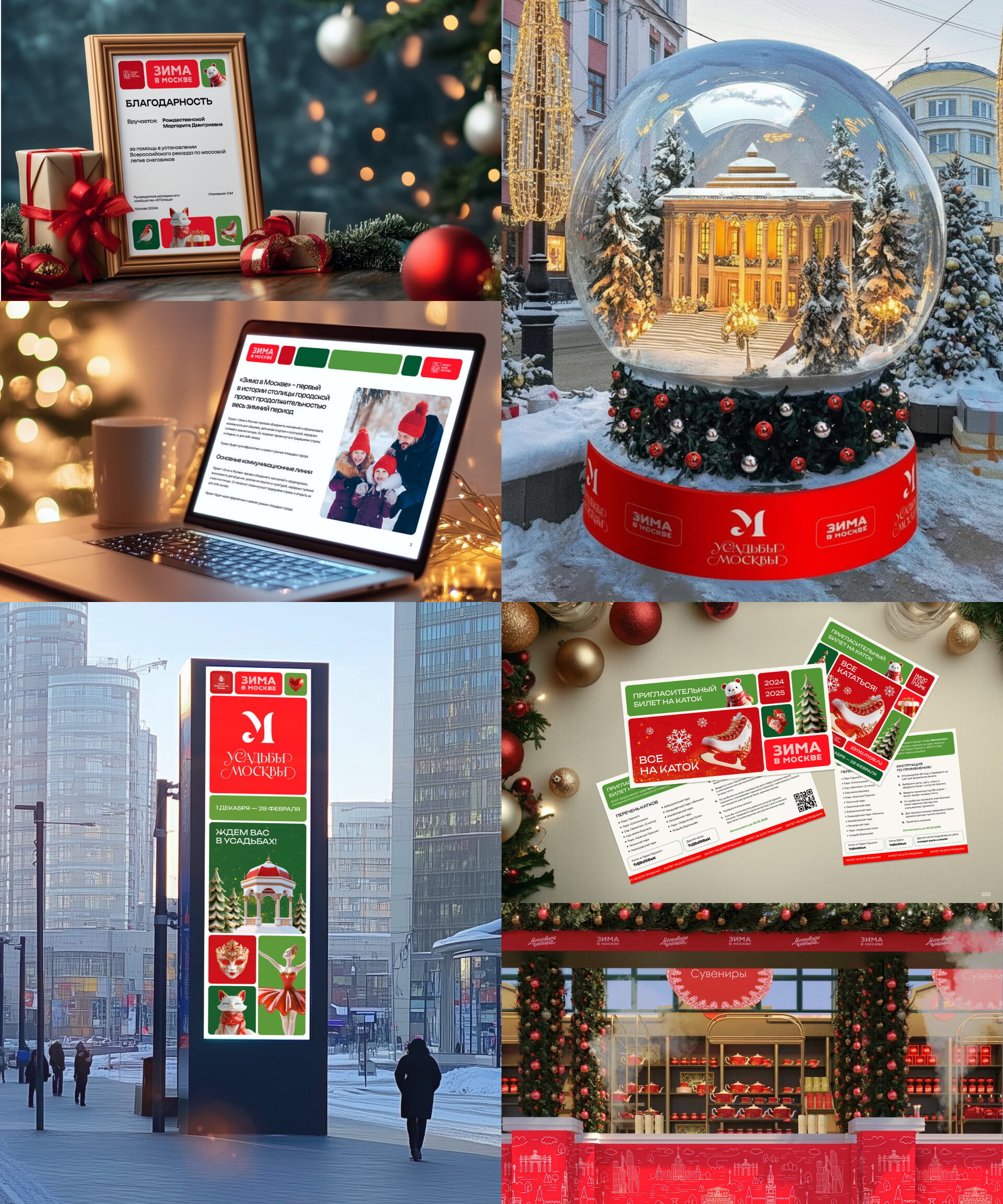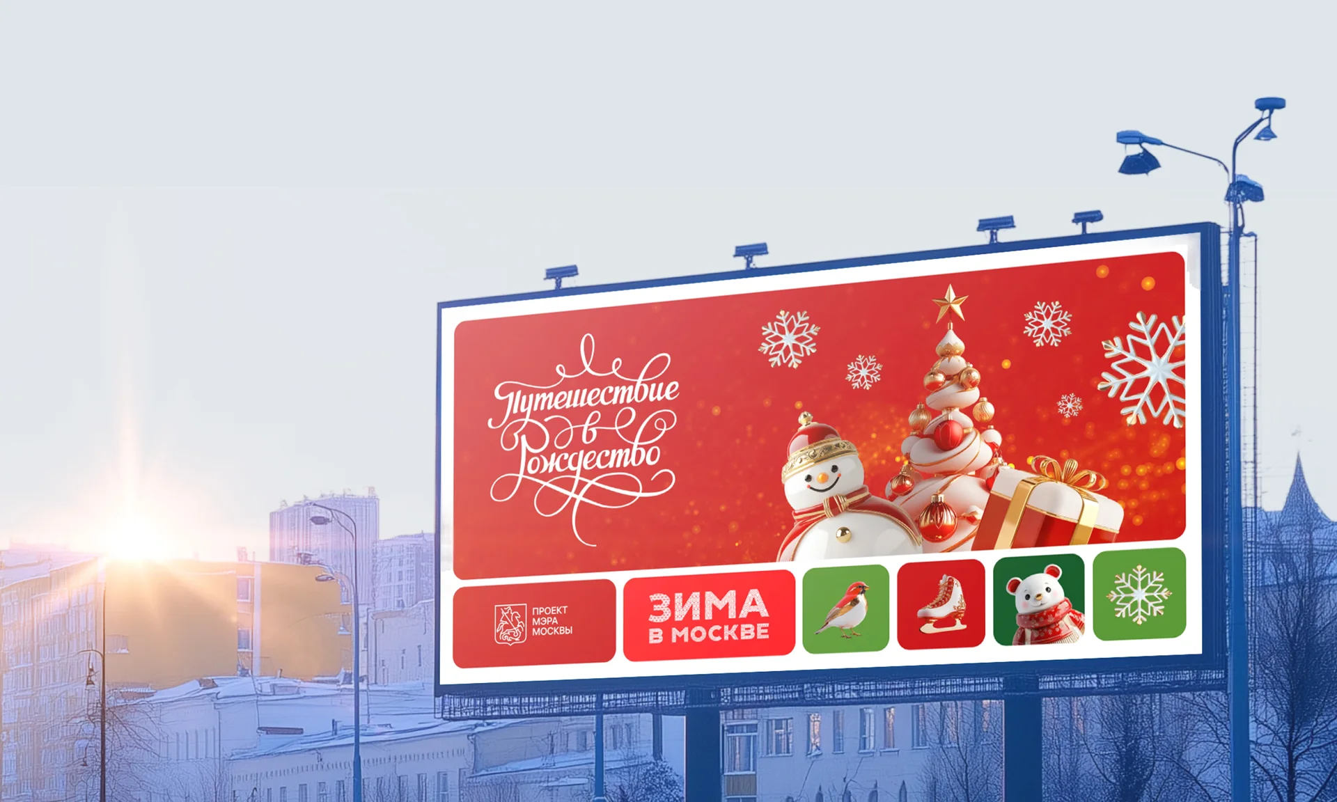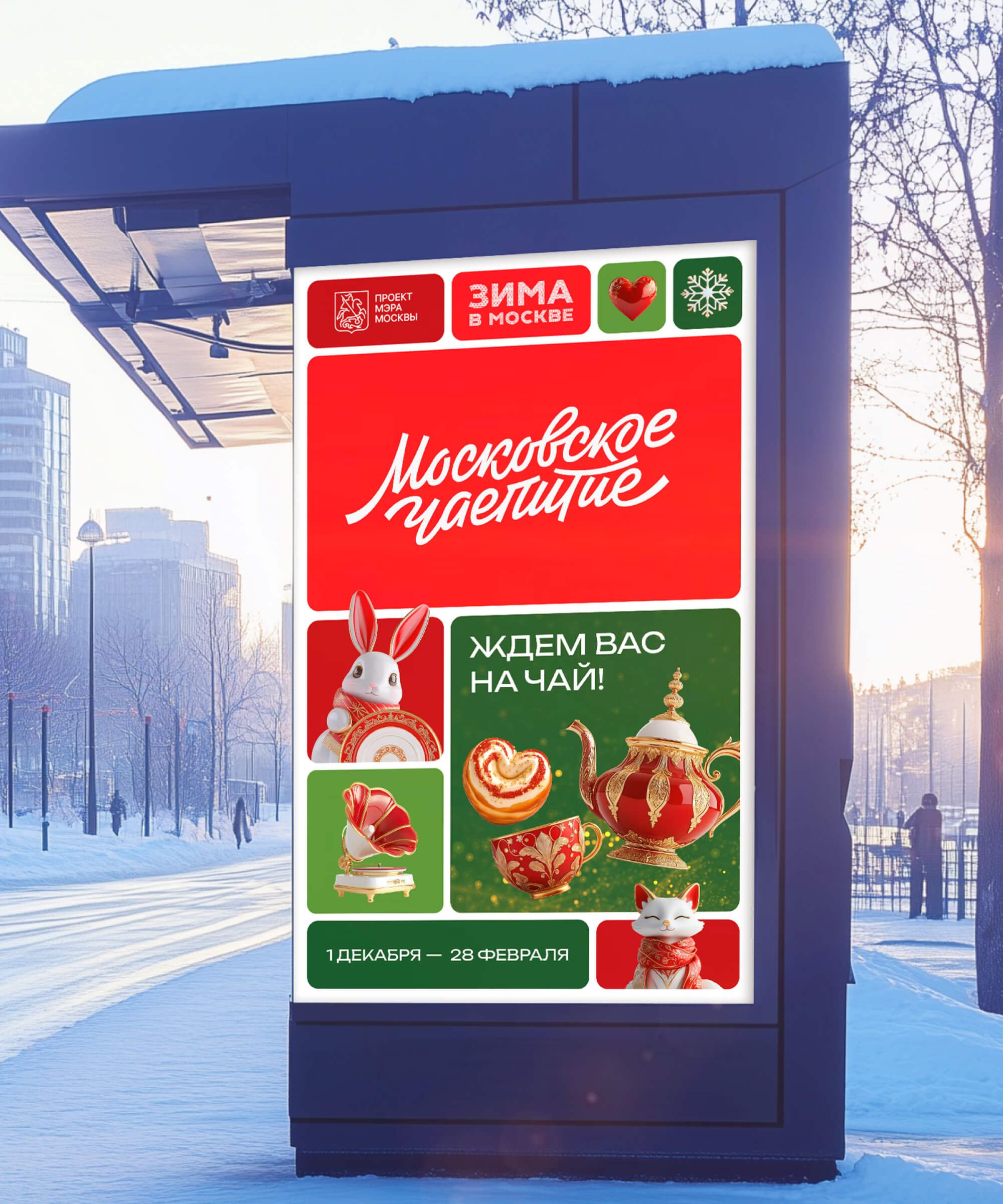 Наш подход позволил партнёрам проекта интегрировать в визуал дополнительные элементы, сохраняя единый стиль «Зимы в Москве».