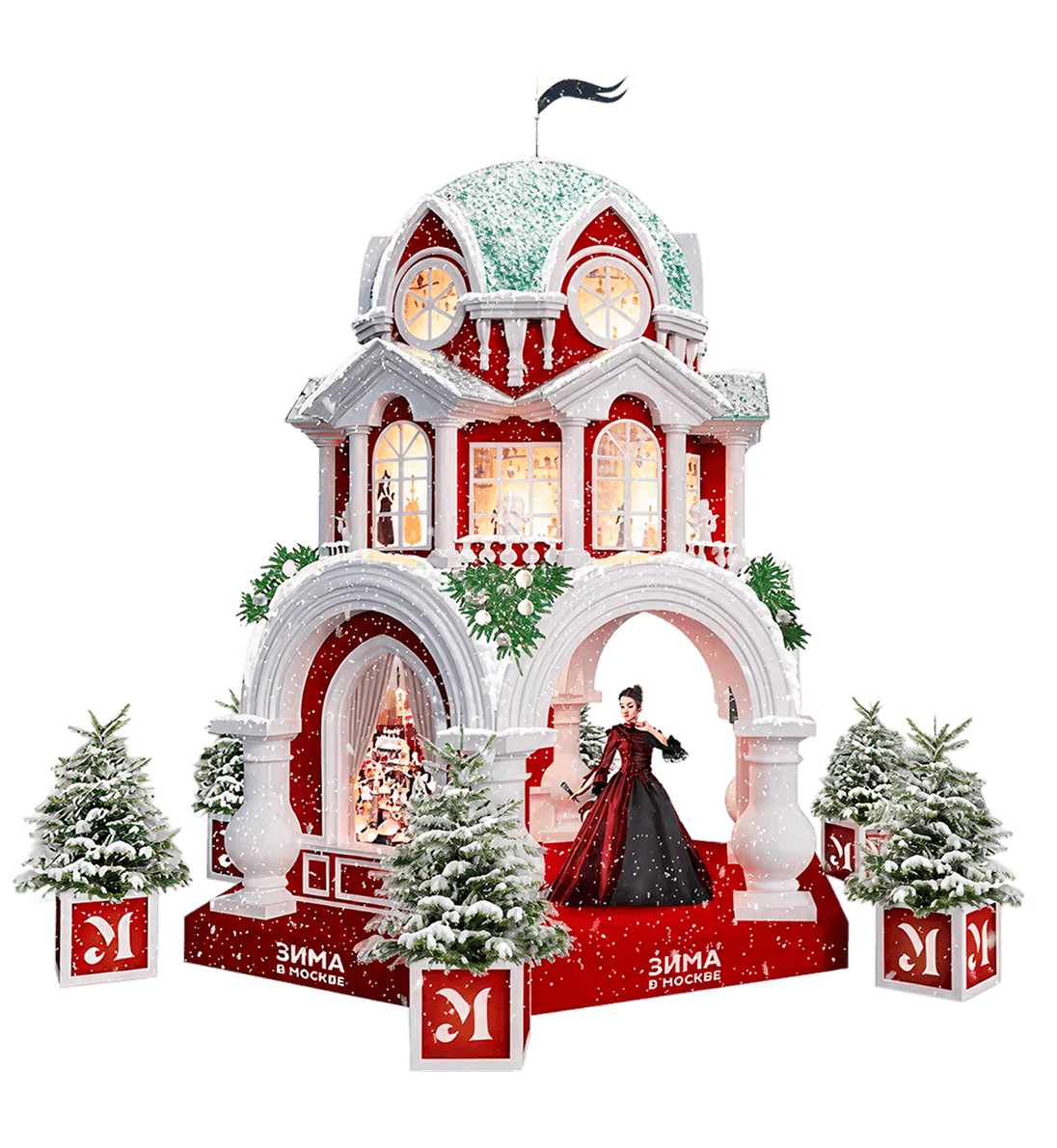 Для нас было важно сохранить узнаваемый стиль и атмосферу зимней Москвы даже в мелких деталях, чтобы каждый предмет выглядел гармонично и сразу ассоциировался с проектом.