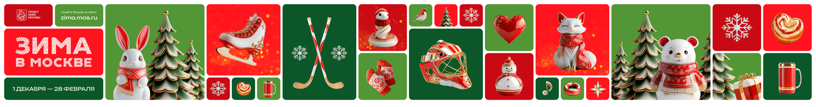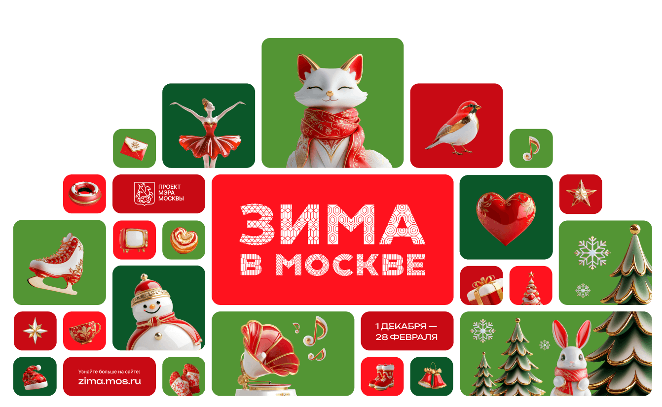 «Зима в Москве» — это масштабный московский проект, объединяющий фестивали, развлекательные, культурные и спортивные мероприятия зимнего сезона 2024−2025. Наша команда создала для него фирменный стиль и серию иллюстраций, которые передают волшебную атмосферу зимней столицы.