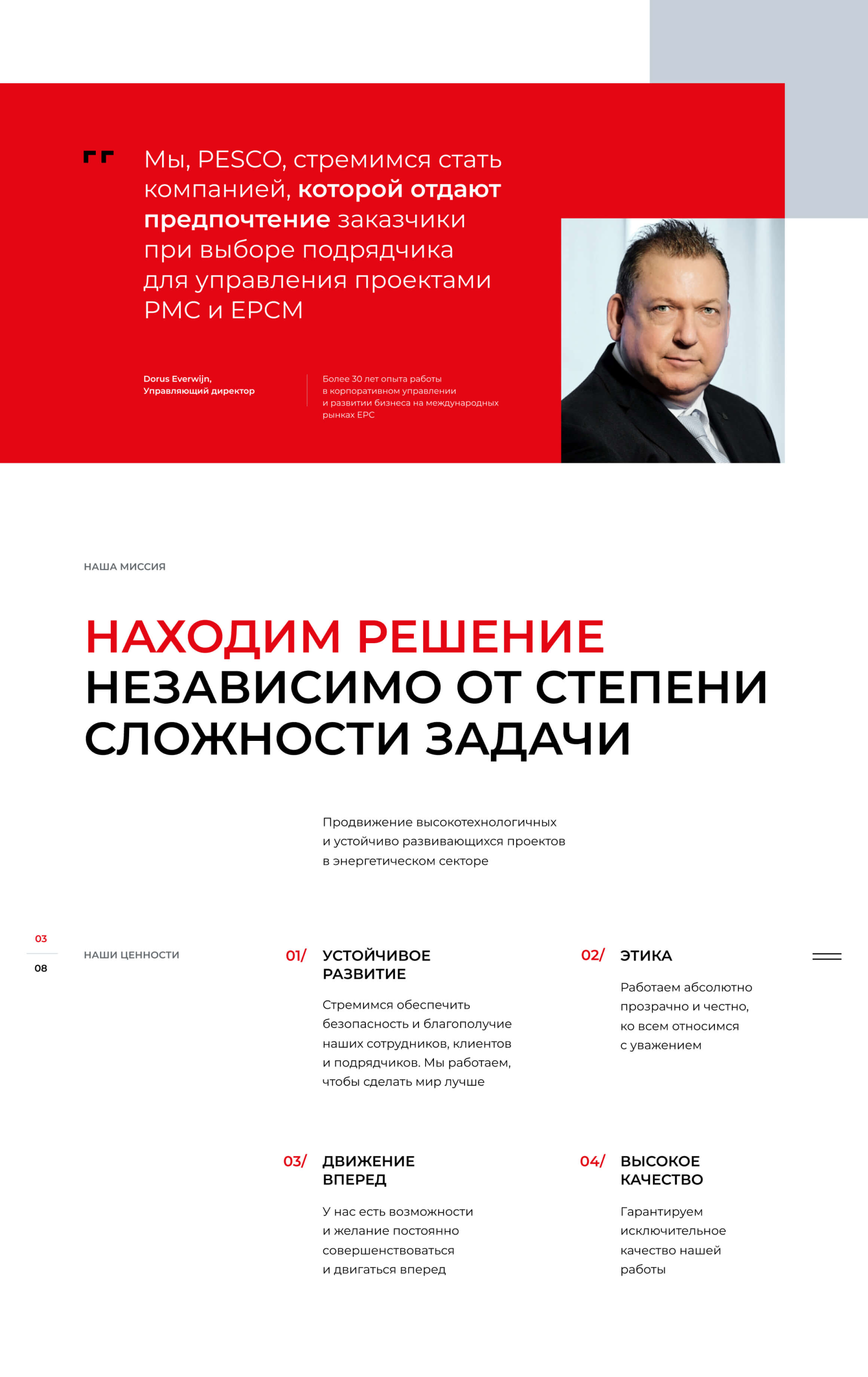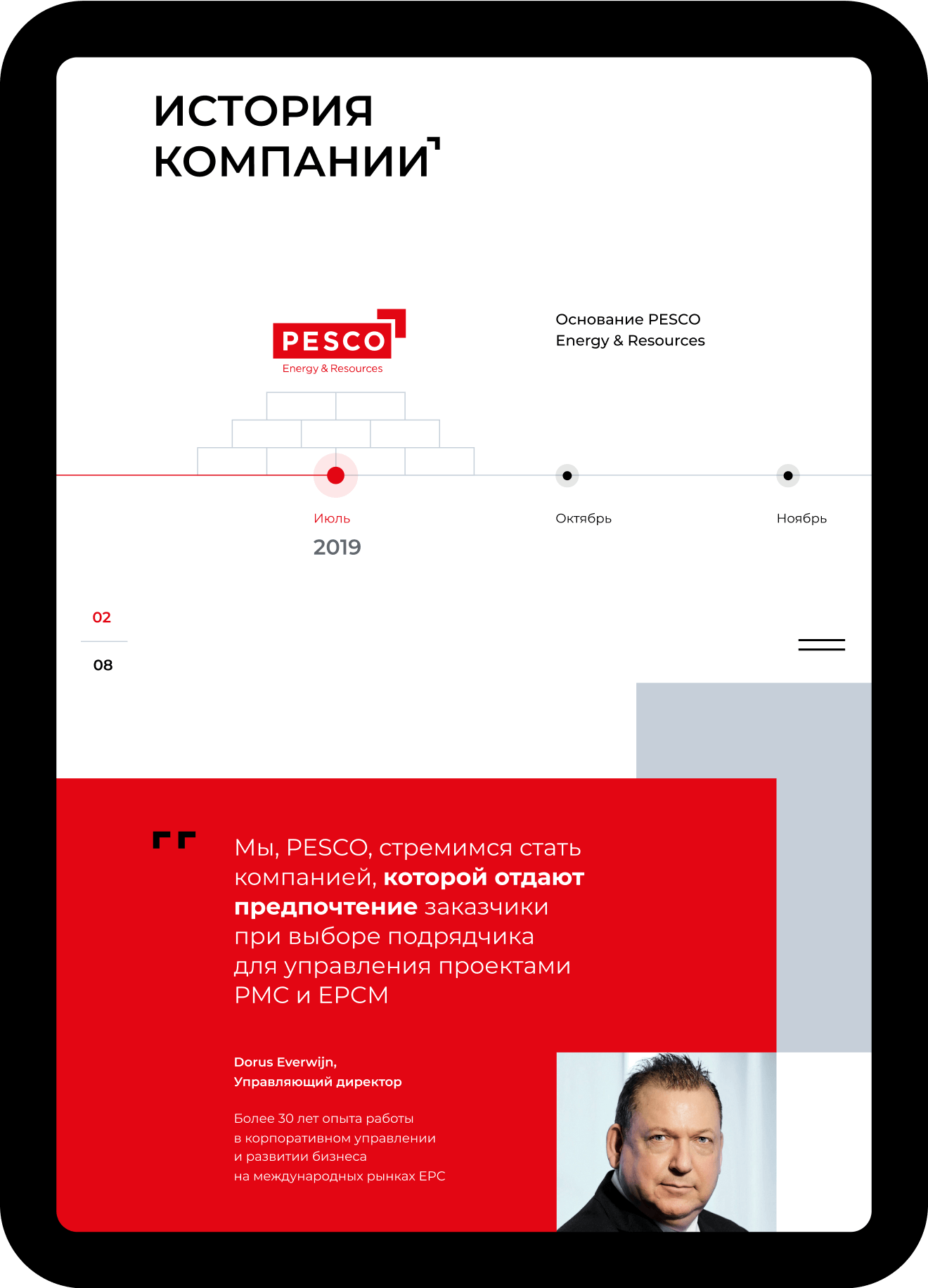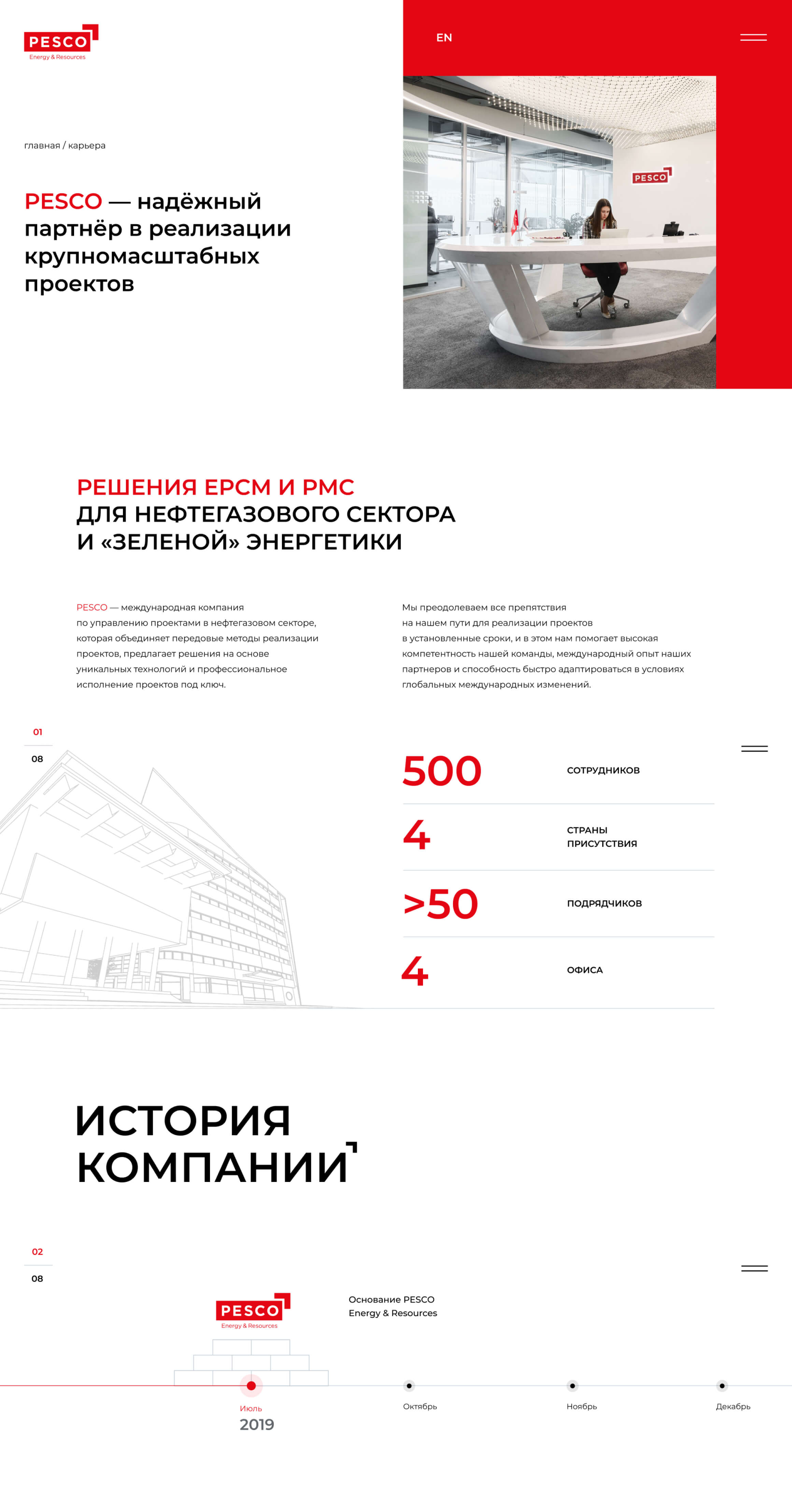 PESCO — международная компания по управлению проектами. Перед Notamedia стояла задача разработать новый корпоративный сайт компании, который должен был отвечать таким бизнес-целям, как привлечение новых партнеров и клиентов, расширение штата сотрудников, повышение узнаваемости компании и HR-бренда на международном рынке.