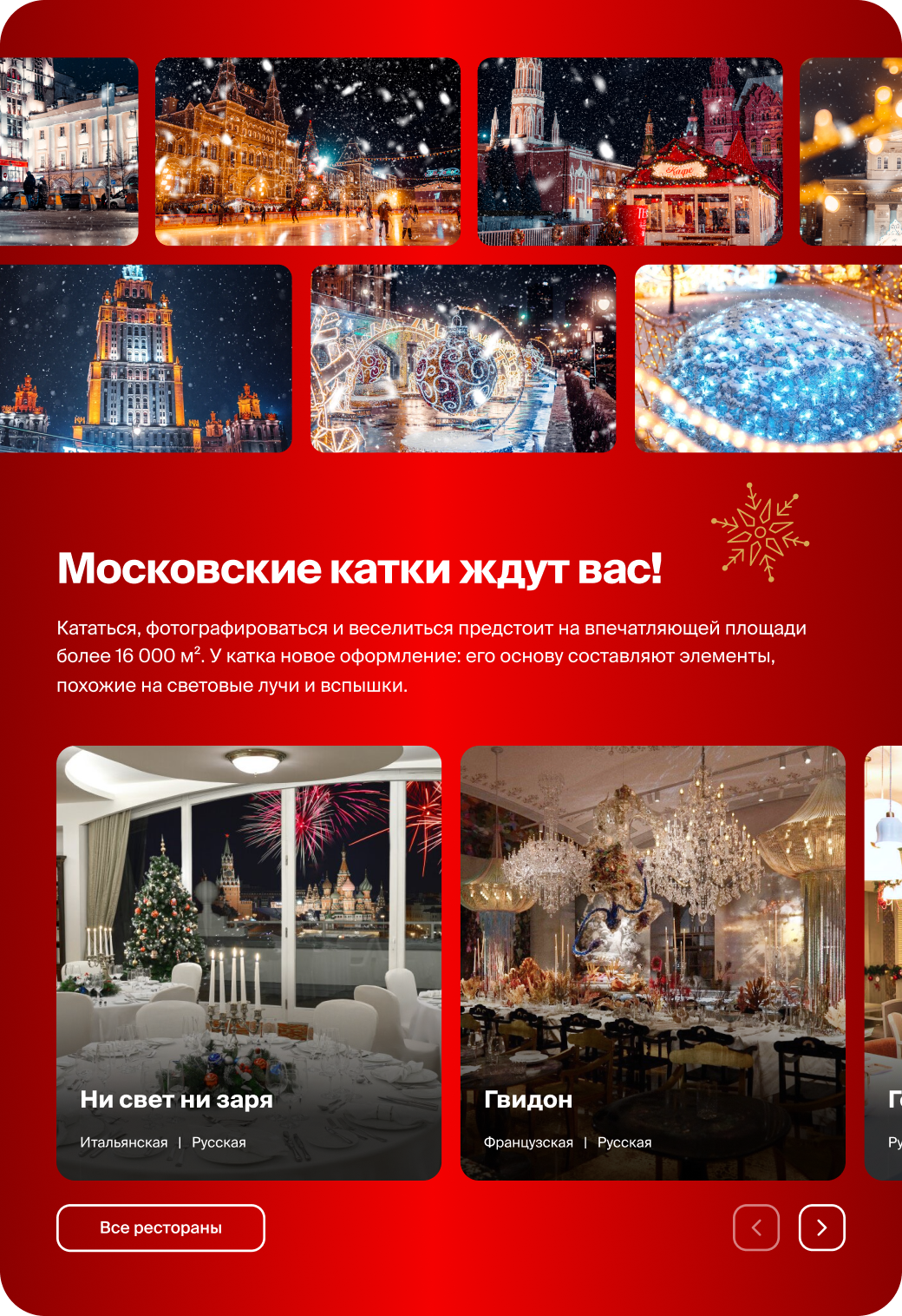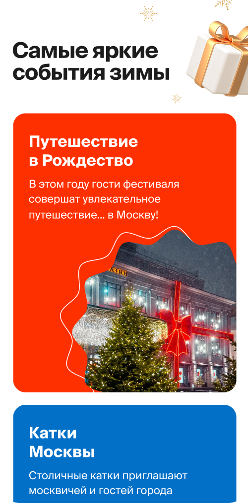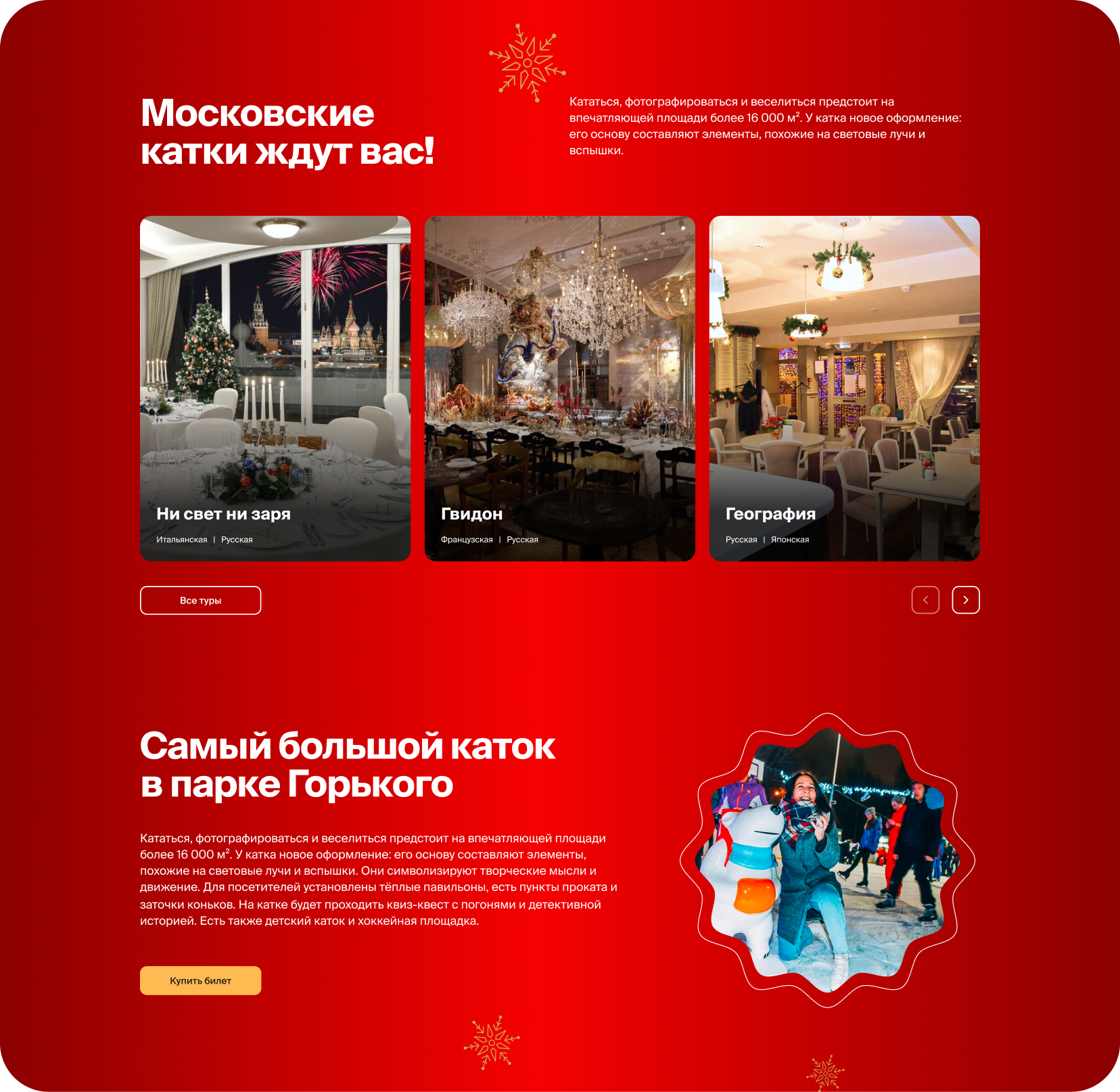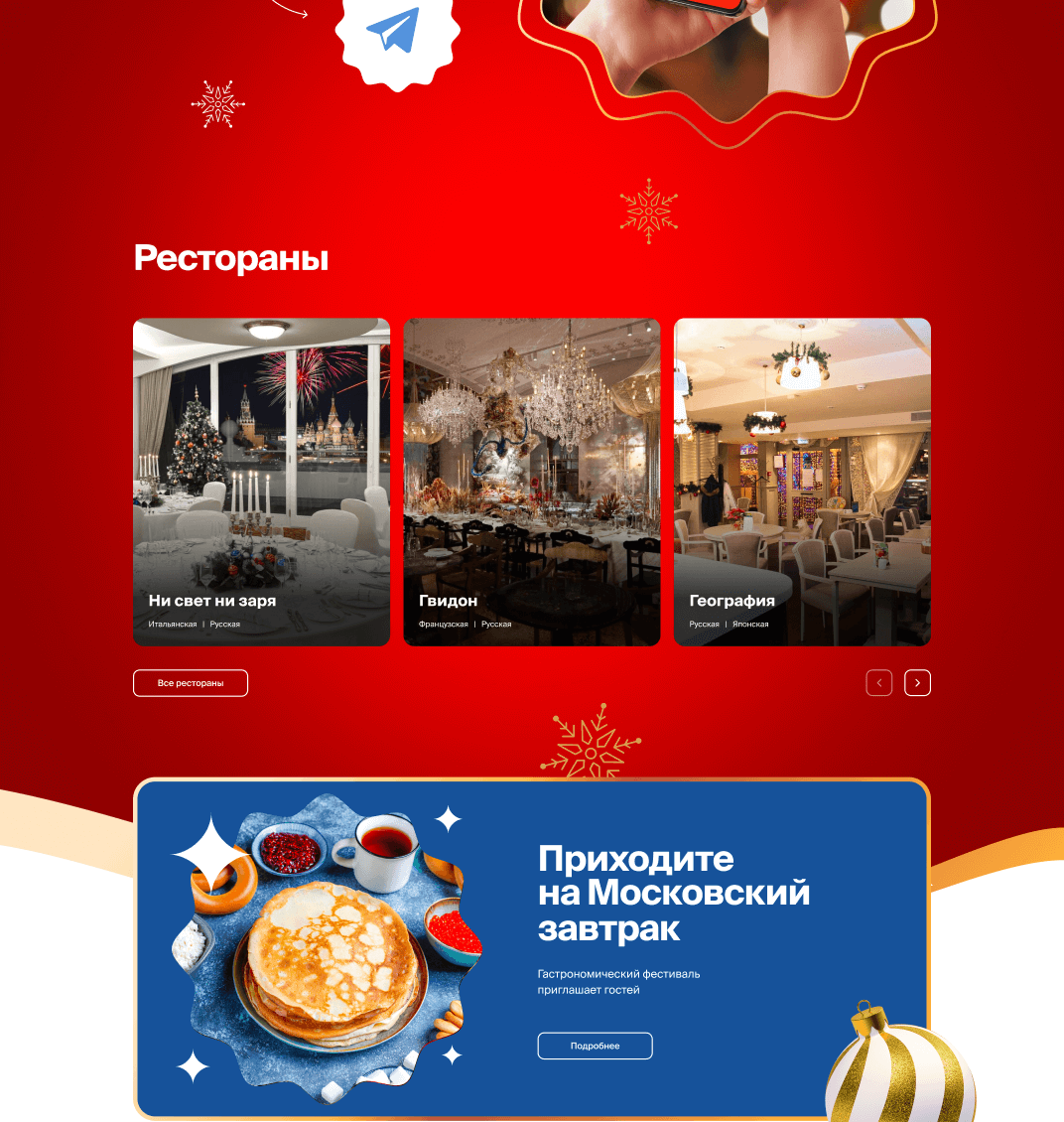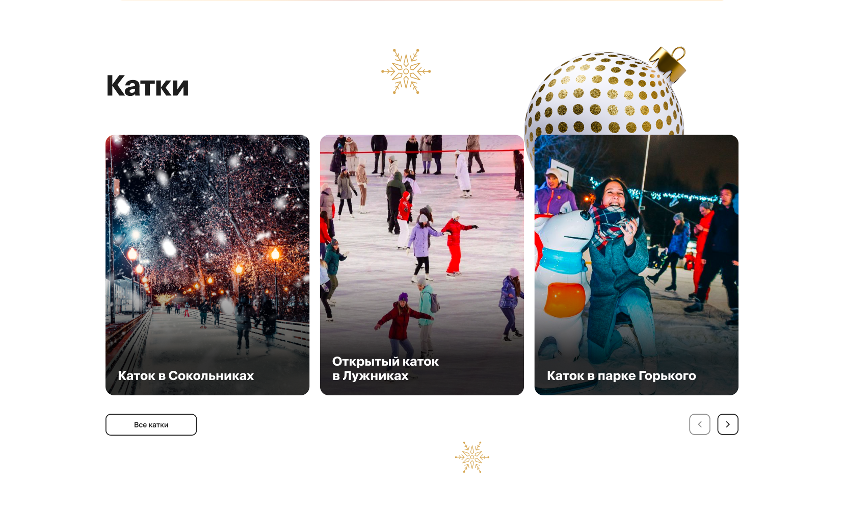 Целью разработки новогоднего сайта RUSSPASS было создание площадки, которая помогала бы москвичам и гостям столицы удобно и эффективно спланировать свое времяпрепровождение на праздничные каникулы.