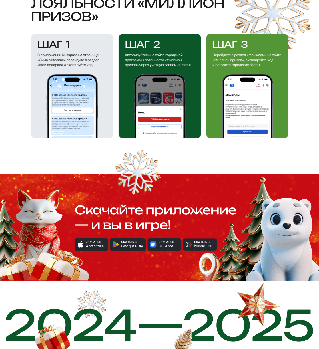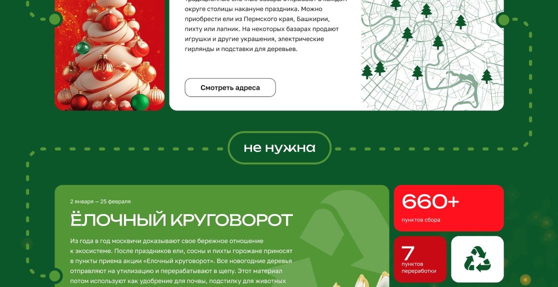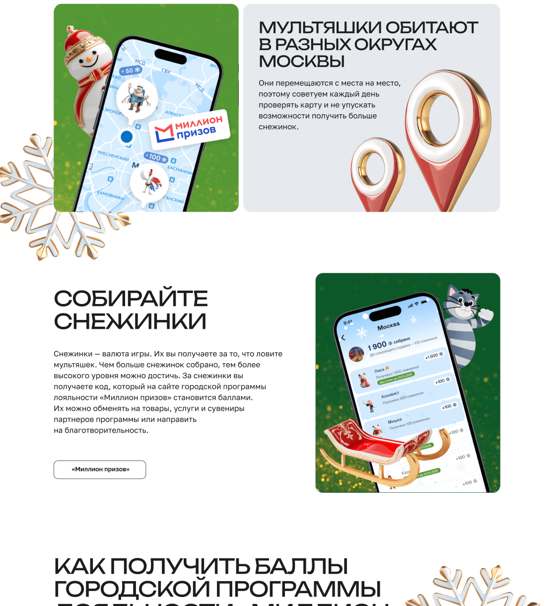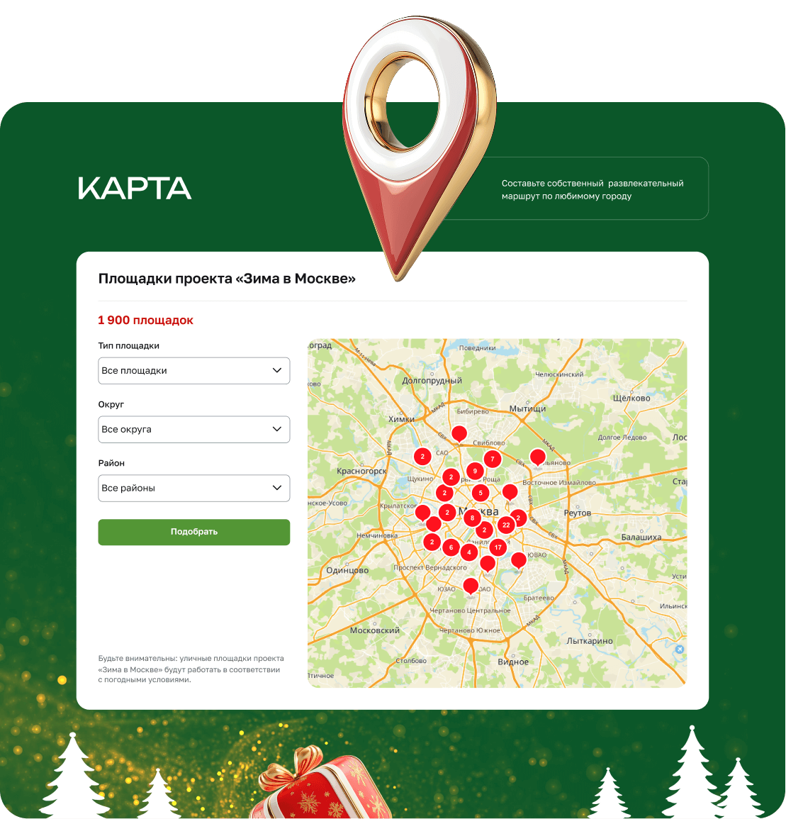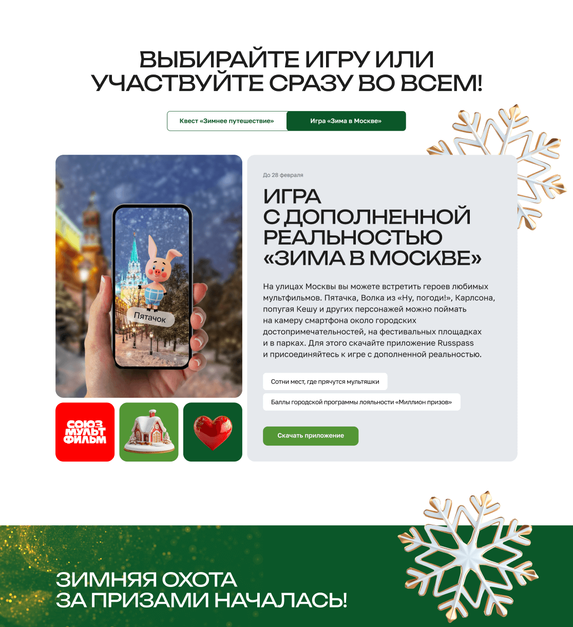 Целью разработки сайта «Зима в Москве» было создание единого информационного пространства, объединяющего всё разнообразие городских мероприятий и активностей, чтобы вдохновить жителей и гостей столицы на участие в зимних событиях.